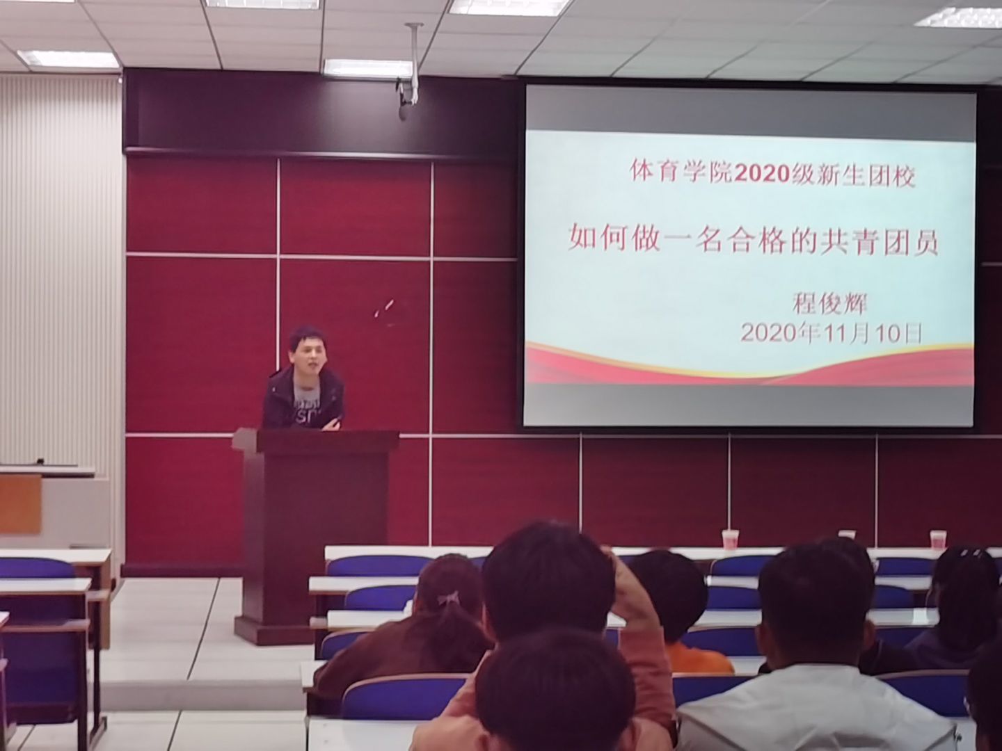 11月10日, 体育bbin宝盈集团平台首页于体育馆多媒体教室开展以“如何做一名合格的共青团员”为主题的新生团课活动,2020级全体新生参加此次活动。本次团课由bbin宝盈集团平台首页团委老师程俊辉主讲。