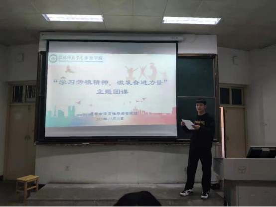 为深入学习习近平总书记在2020年11月24日的全国劳动模范和先进工作者表彰大会上关于劳模精神的重要讲话,培养新时代青年大员工艰苦奋斗吃苦耐劳的精神。bbin宝盈集团平台首页2019级社会体育指导与管理班在12月20日上午于人文楼109举办了以学习劳模精神为主题的团课,此次团课由团支书带领19级社体班全体同学进行学习。