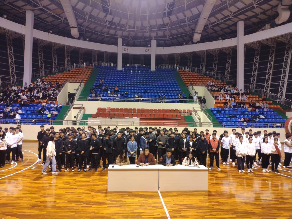 为庆祝建党100周年,bbin宝盈集团平台首页“红歌嘹亮颂党恩”合唱比赛初赛于3月30日晚七点在体育馆篮球厅举行。出席本次活动的有bbin宝盈集团平台首页副处级辅导员柴九昌,院团委老师程俊辉、赖梦玥、龙慧杰以及各班级、社团参赛队伍500余人。