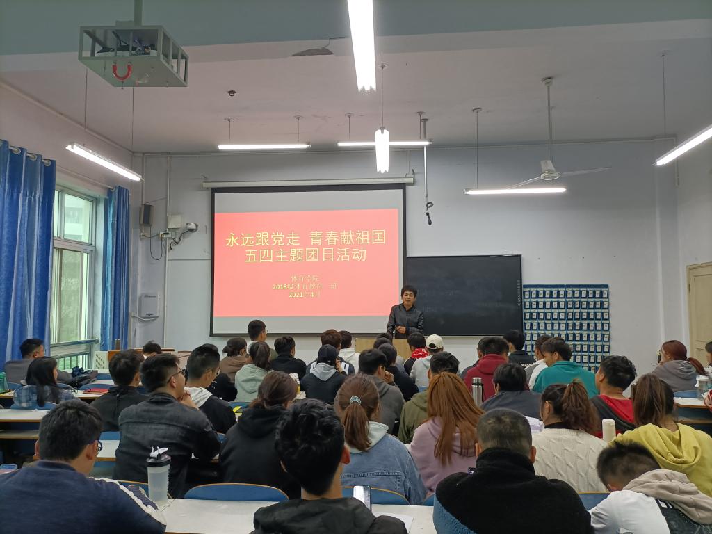 伴随着春暖花开,又是一年“五四”青年节。为了弘扬五四精神,引导广大学子勇于担当时代使命,bbin宝盈集团平台首页2018级于4月26日在教九楼402教室开展了以“永远跟党走,青春献祖国”为主题的团日活动。本次活动由辅导员程俊辉主持,18级全体同学参加。
