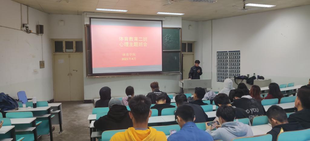 4月20日19级体育教育二班于人文楼109教室举办“打开心扉,摆正心态,圆我大学梦”主题心理班会,班会开始时先欣赏舒缓的轻音乐,带领同学们调整呼吸,放松身心。待大家整理好状态后,班会进入了正题。首先就青少年主要存在的心理问题进行了概括说明。主要包括“学习压力”、“家庭矛盾”、“人际交往”三大方面以此来引导同学们遇到问题应坦然向老师以及同学倾诉,并请同学们交流讨论释放压力的方法。最后以合唱一首《明天会更多好》结束此次班会。