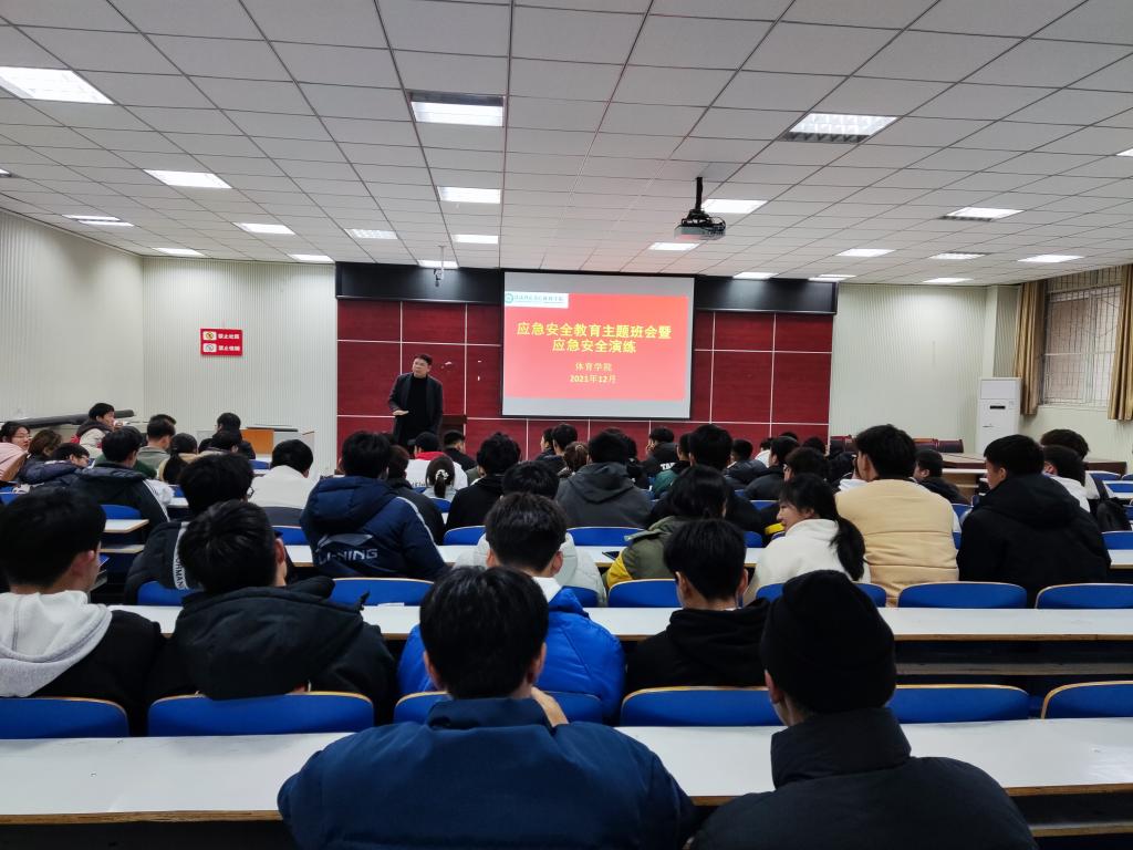 为增强同学们的安全防范意识,提高同学们的安全防范能力。12月20日上午,bbin宝盈集团平台首页在体育馆多媒体教室举行应急安全教育主题班会暨应急安全演练。bbin宝盈集团平台首页党委副书记柴九昌、辅导员程俊辉及2021级全体员工参与本次活动。