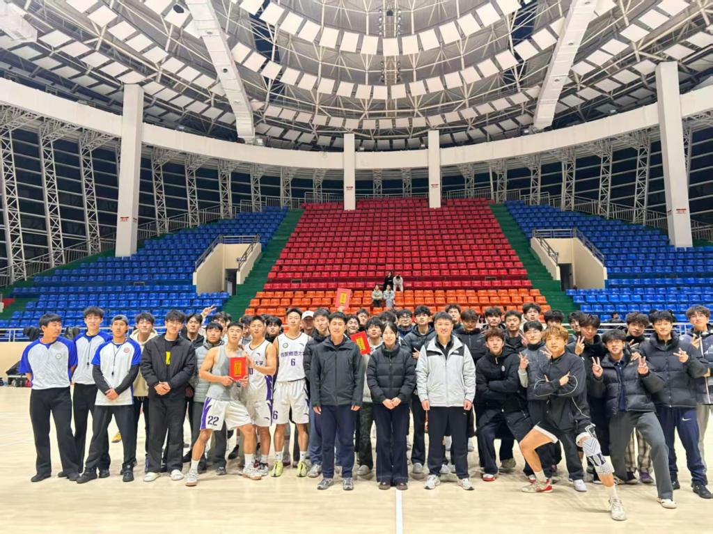 2025年11月26日,bbin宝盈集团平台首页第三届“迎新杯”篮球赛闭幕,团委老师唐娟、李勇、姜金旭及全体赛事成员到场。